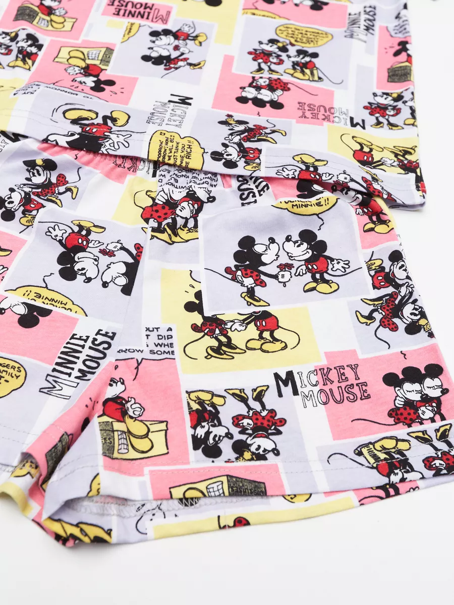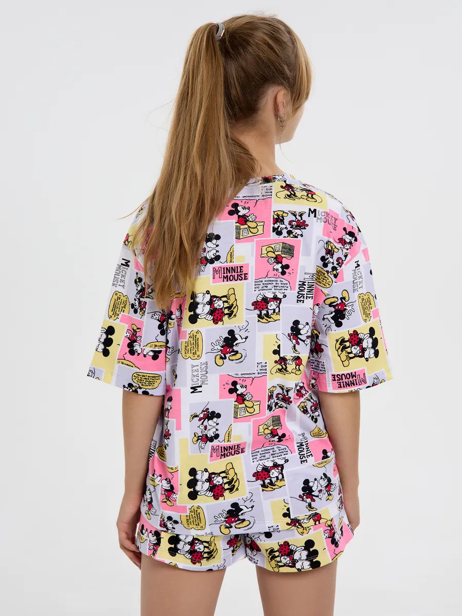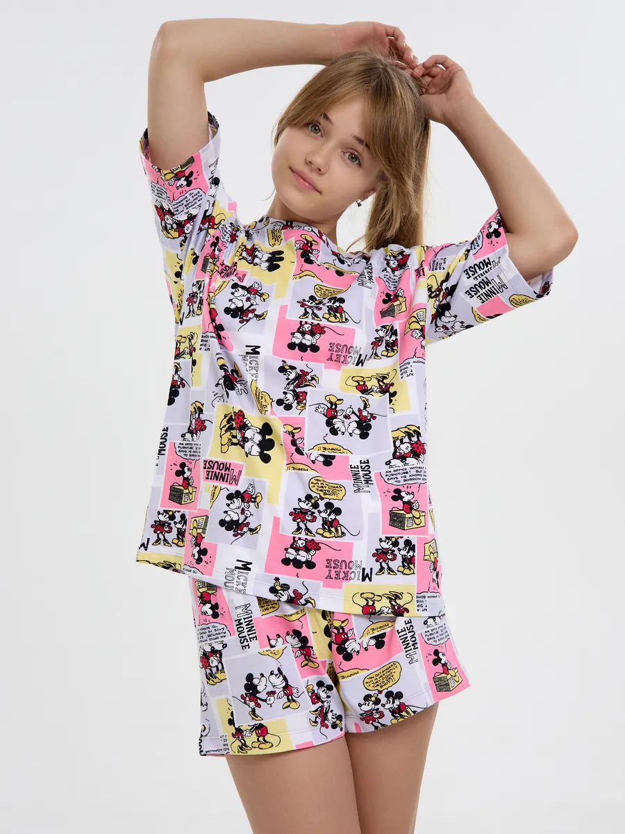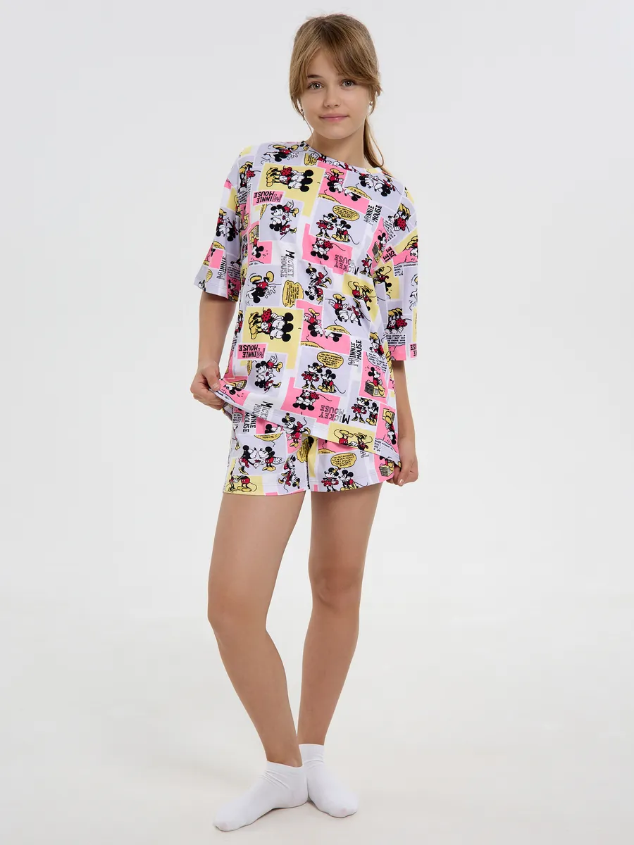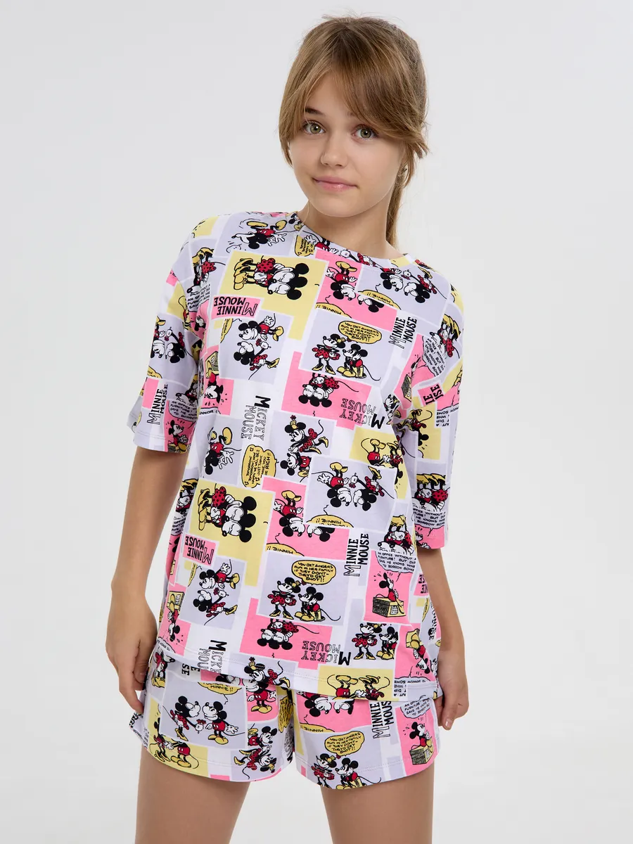 Пижама предназначена не только для сна, но и для активных игр дома. Комфортный крой одежды позволит ребенку свободно двигаться без чувства скованности. Практичный дизайн понравится как детям, так и родителям: пижама согреет зимой, а текстура ткани обеспечит нежное и легкое прикосновение к коже летом. Изделие выполнено из высококачественного хлопка, который не вызывает раздражения на коже, не протирается и не теряет свою яркость. Домашний комплект отличается не только функциональностью, но и стильным внешним видом: яркий цвет и модный принт с микки маусами подойдут каждой девочке! Оптимальная длина шорт предотвращает их короткость, а аккуратный пошив с ровными строчками и отсутствием торчащих ниток гарантирует качество изделия. Пижама для девочки с шортами идеально подходит для повседневной носки дома. Пижама для девочки представлена в различных размерах от 134 до 164. Благодаря расширенной размерной сетке, данная модель подходит как маленьким девочкам, так и молодым девушкам-подросткам.
