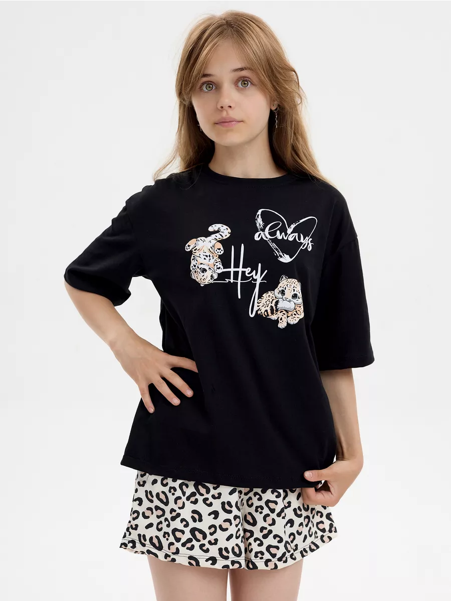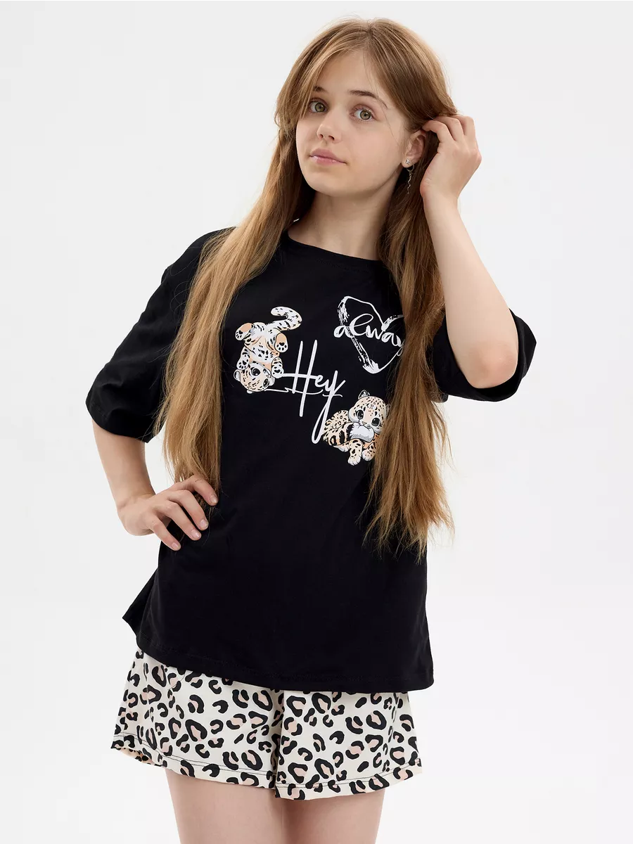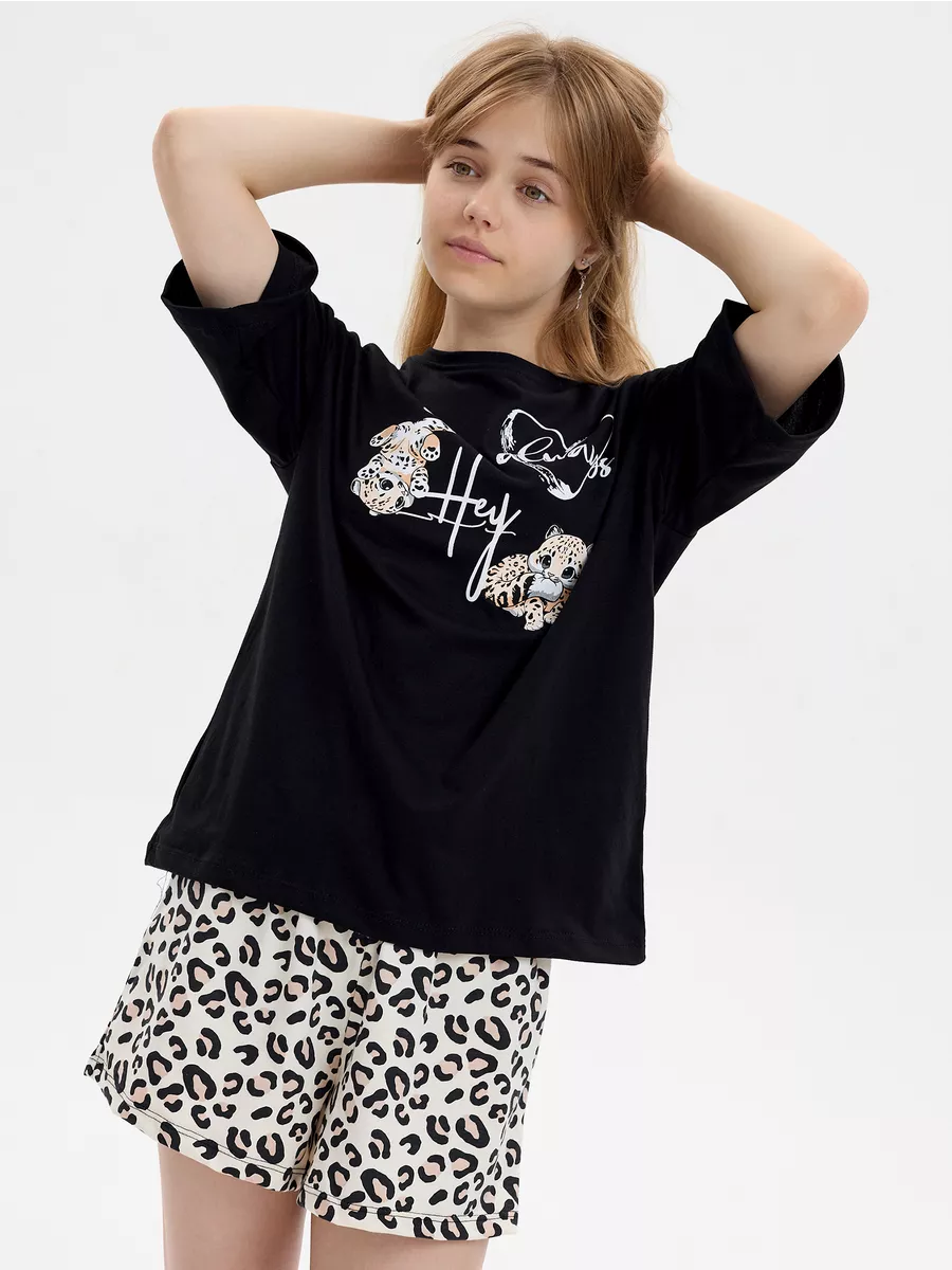 Пижама предназначена не только для сна, но и для активных игр дома. Комфортный крой одежды позволит ребенку свободно двигаться без чувства скованности. Практичный дизайн понравится как детям, так и родителям: пижама согреет зимой, а текстура ткани обеспечит нежное и легкое прикосновение к коже летом. Изделие выполнено из высококачественного хлопка, который не вызывает раздражения на коже, не протирается и не теряет свою яркость. Домашний комплект отличается не только функциональностью, но и стильным внешним видом: яркий цвет и модный леопардовый принт с леопардами подойдут каждой девочке! Оптимальная длина шорт предотвращает их короткость, а аккуратный пошив с ровными строчками и отсутствием торчащих ниток гарантирует качество изделия. Пижама для девочки с шортами идеально подходит для повседневной носки дома. Пижама для девочки представлена в различных размерах от 134 до 170. Благодаря расширенной размерной сетке, данная модель подходит как маленьким девочкам, так и молодым девушкам-подросткам.
