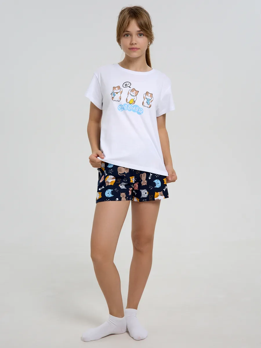 Домашний костюм представлен в расширенной размерной сетке, включая большие размеры, поэтому подойдёт как детям, так и девушкам-подросткам. Пижама с шортами j-kids станет отличным подарком на праздник, включая 8 Марта, День Рождения, а также станет практичным выбором для комфортного гардероба.