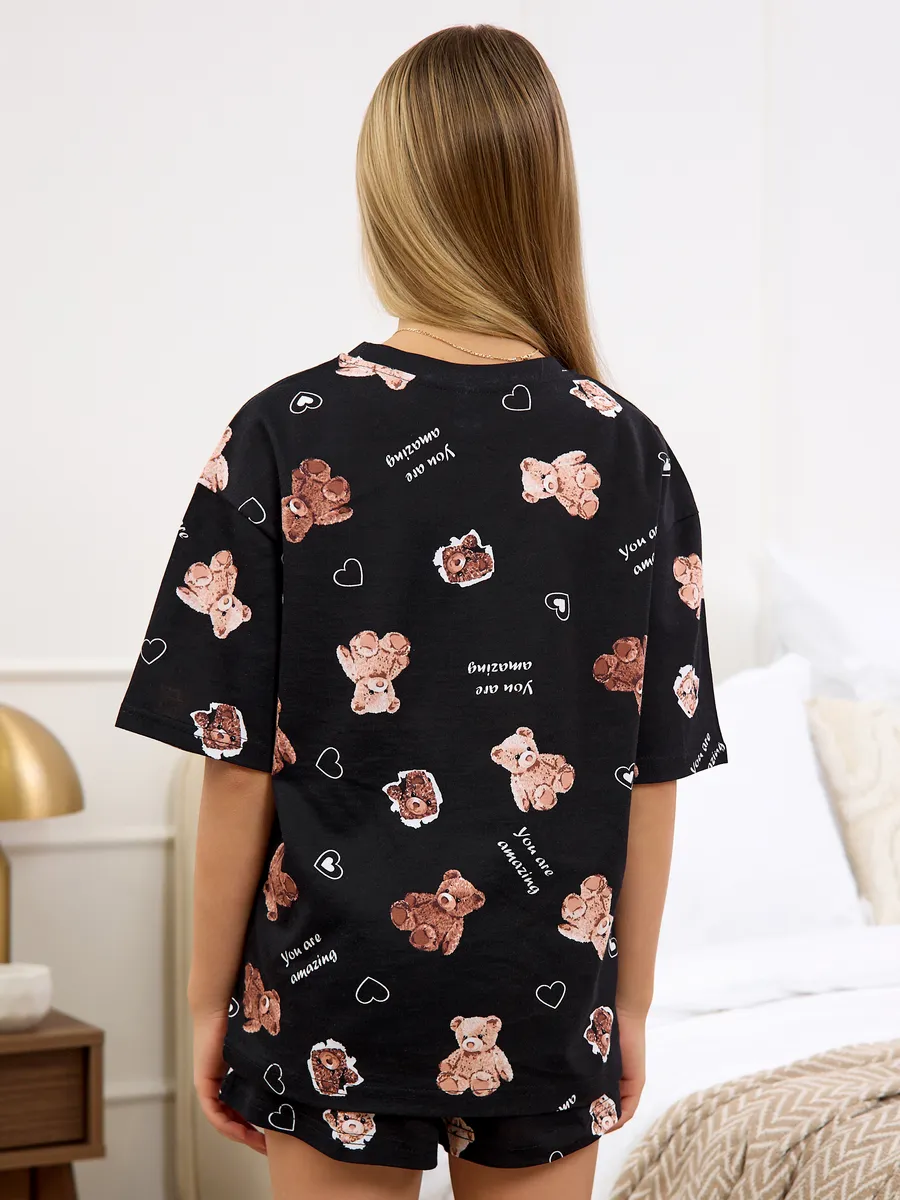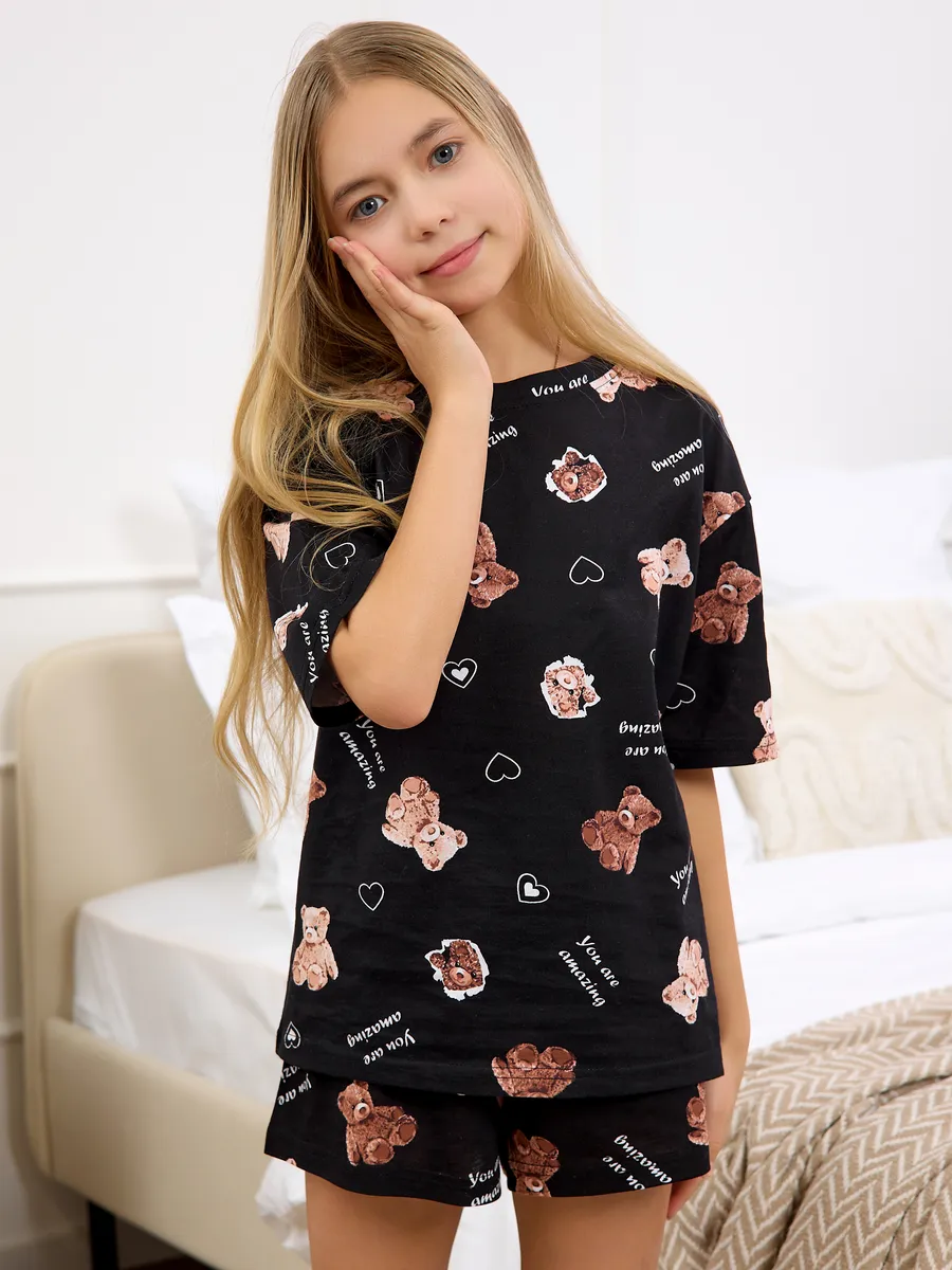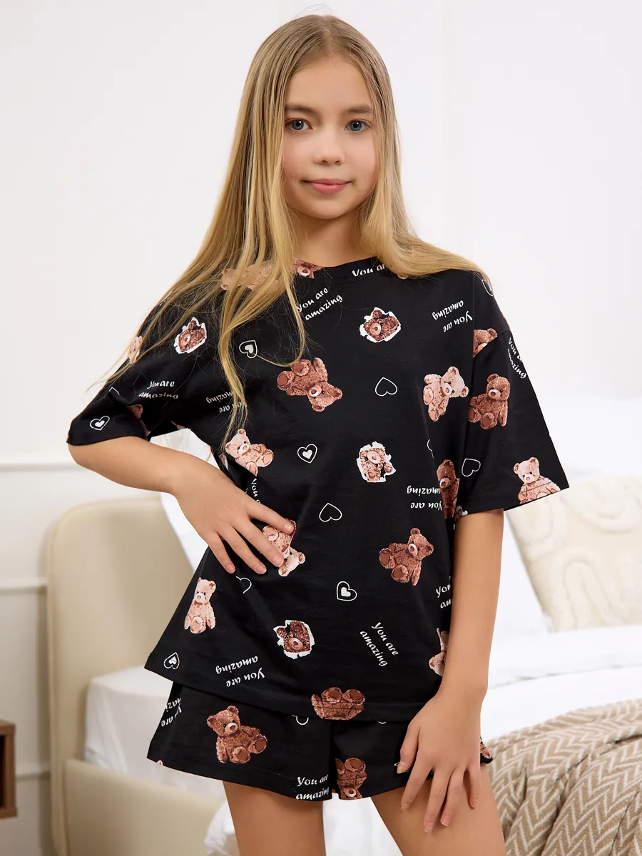 Представляем вам пижаму оверсайз для девочки, изготовленную из легкого и дышащего материала. Наши пижамы изготовлены из хлопка премиального качества, приятный к телу и дышащий материал обеспечит вашему ребенку свободу движений и комфорт. Комплект пижамы состоит из оверсайз футболки и свободных шорт. Удобные шорты имеют пояс на резинке, которые не вытягиваются после продолжительного использования, и не сдавливают живот. Универсальный вариант для сна, ночевок с подругами и идеальный подарок на День Рождение или 8-е марта.