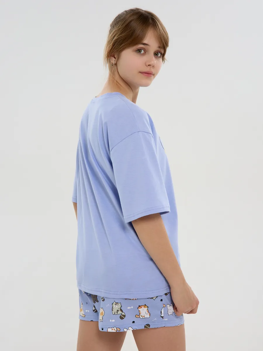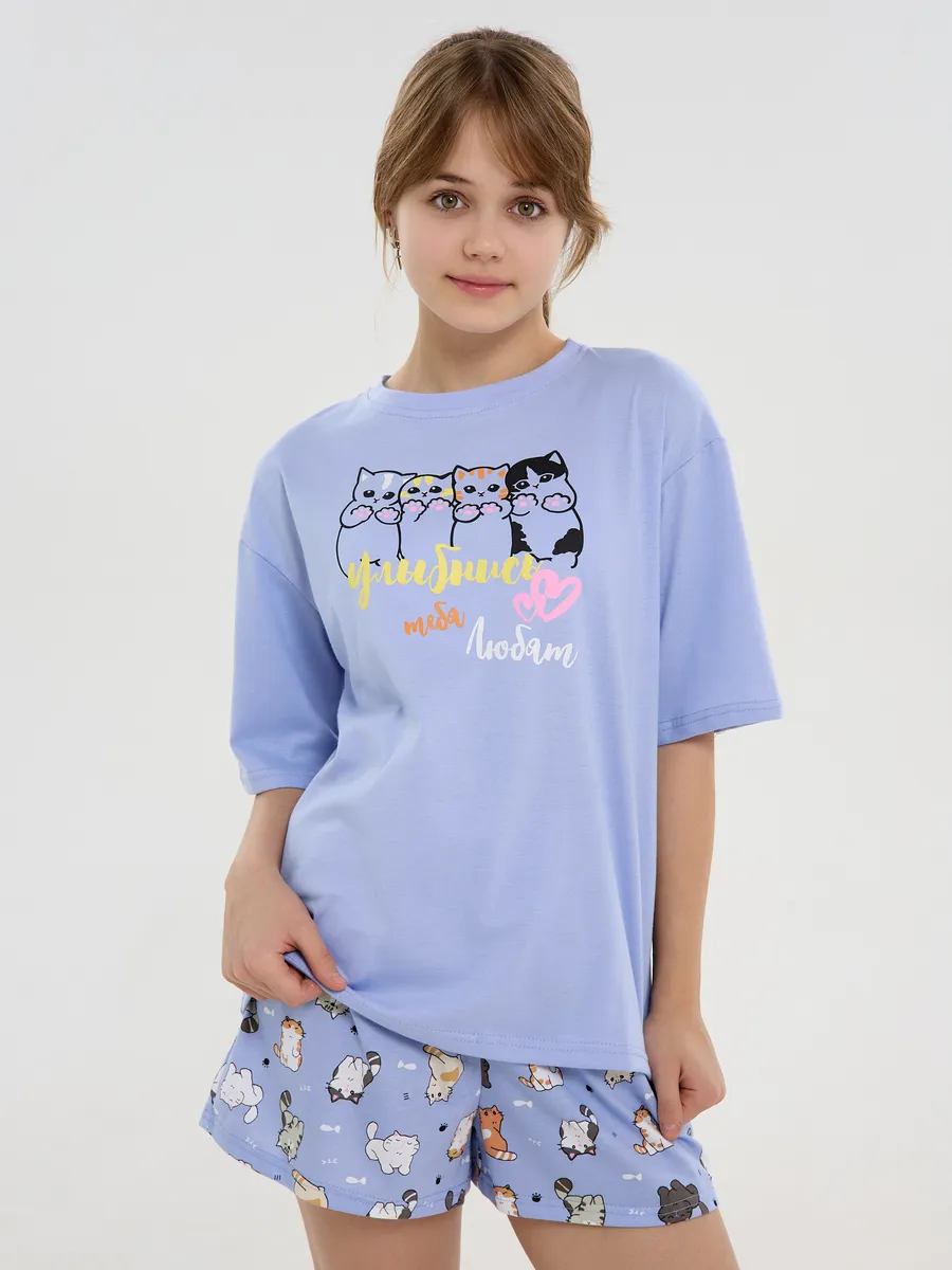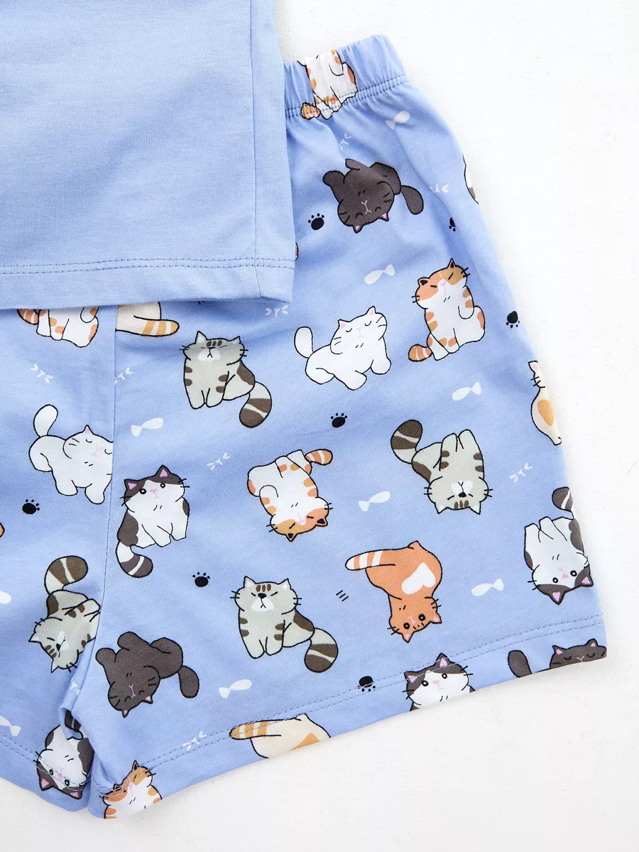 Пижама предназначена не только для сна, но и для активных игр дома. Комфортный крой одежды позволит ребенку свободно двигаться без чувства скованности. Практичный дизайн понравится как детям, так и родителям: пижама согреет зимой, а текстура ткани обеспечит нежное и легкое прикосновение к коже летом. Изделие выполнено из высококачественного хлопка, который не вызывает раздражения на коже, не протирается и не теряет свою яркость. Домашний комплект отличается не только функциональностью, но и стильным внешним видом: яркий цвет и модный принт с котятами подойдут каждой девочке! Оптимальная длина шорт предотвращает их короткость, а аккуратный пошив с ровными строчками и отсутствием торчащих ниток гарантирует качество изделия. Пижама для девочки с шортами идеально подходит для повседневной носки дома. Пижама для девочки представлена в различных размерах от 134 до 170. Благодаря расширенной размерной сетке, данная модель подходит как маленьким девочкам, так и молодым девушкам-подросткам.