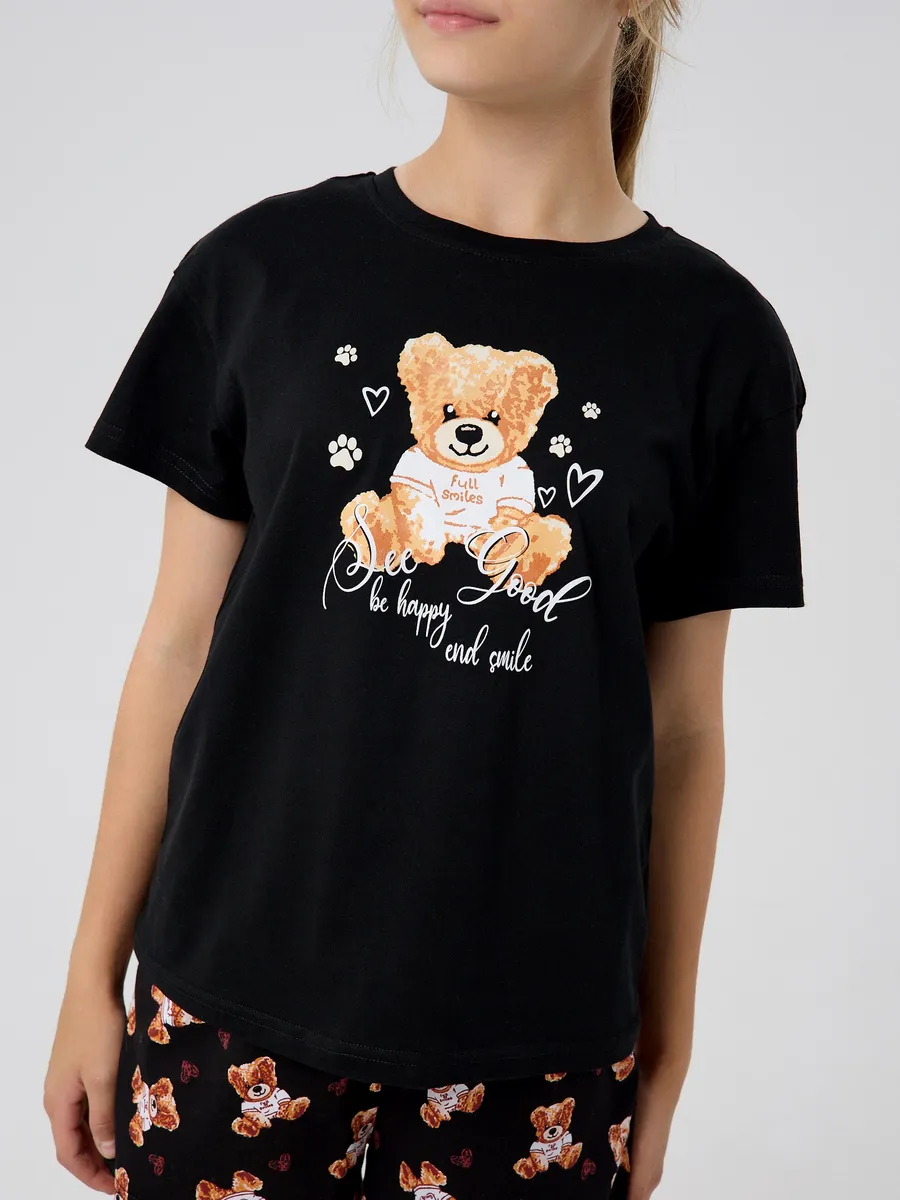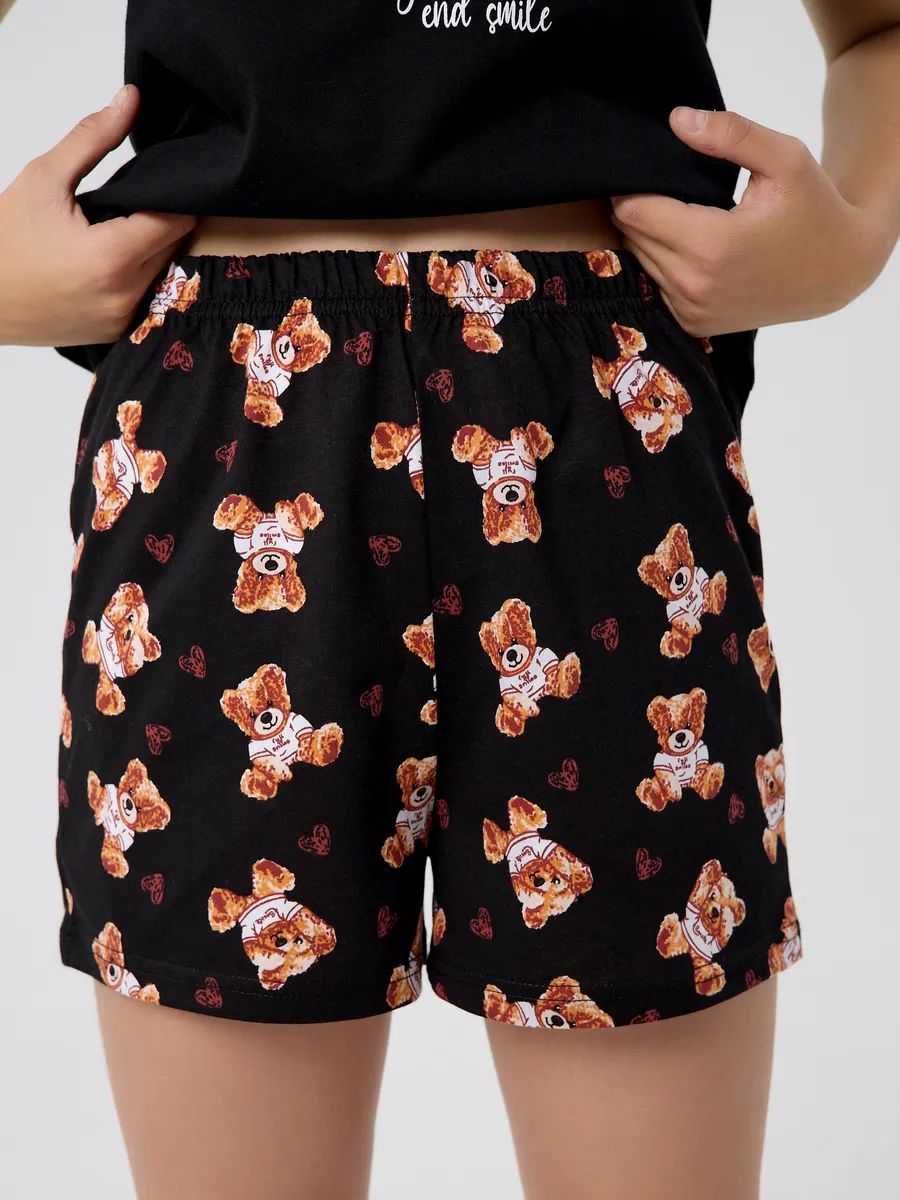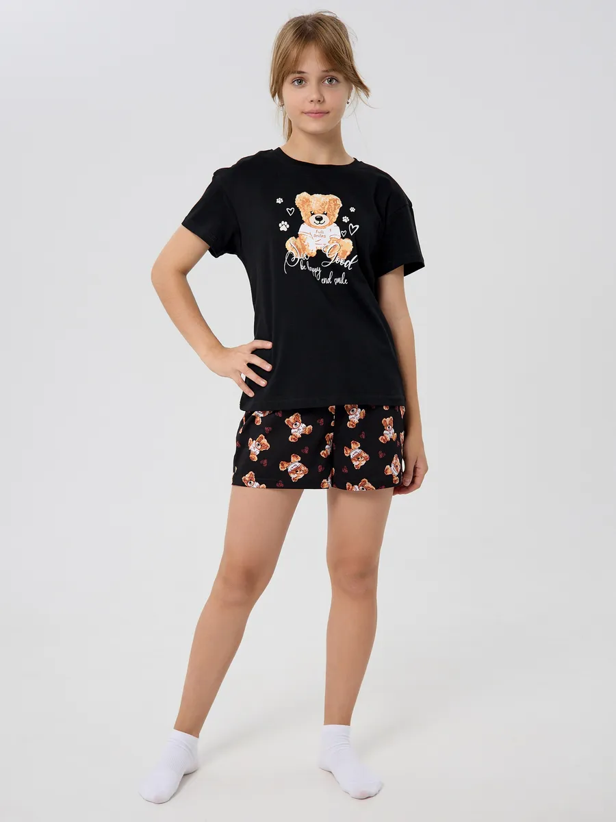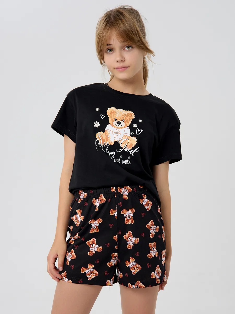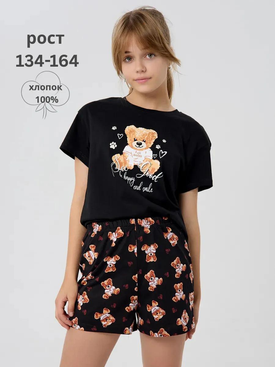 Пижама предназначена не только для сна, но и для активных игр дома. Комфортный крой одежды позволит ребенку свободно двигаться без чувства скованности. Практичный дизайн понравится как детям, так и родителям: пижама согреет зимой, а текстура ткани обеспечит нежное и легкое прикосновение к коже летом. Изделие выполнено из высококачественного хлопка, который не вызывает раздражения на коже, не протирается и не теряет свою яркость. Домашний комплект отличается не только функциональностью, но и стильным внешним видом: яркий цвет и модный принт с мишками подойдут каждой девочке! Оптимальная длина шорт предотвращает их короткость, а аккуратный пошив с ровными строчками и отсутствием торчащих ниток гарантирует качество изделия. Пижама для девочки с шортами идеально подходит для повседневной носки дома. Пижама для девочки представлена в различных размерах от 134 до 164. Благодаря расширенной размерной сетке, данная модель подходит как маленьким девочкам, так и молодым девушкам-подросткам.