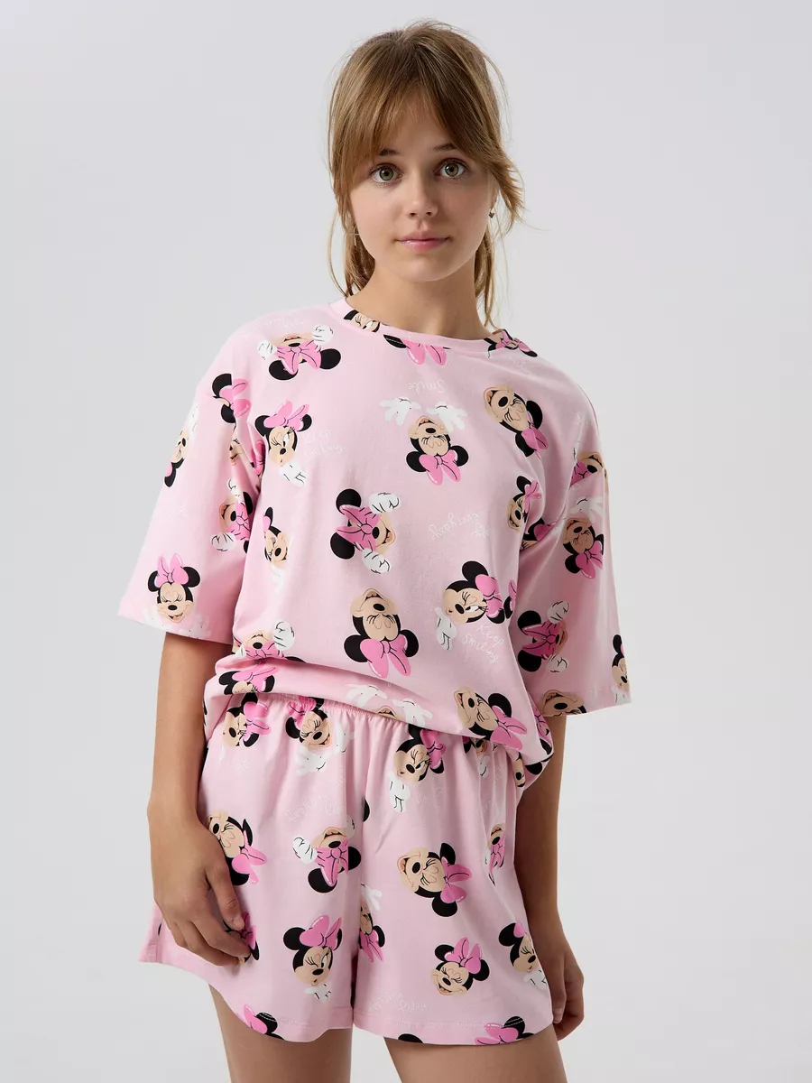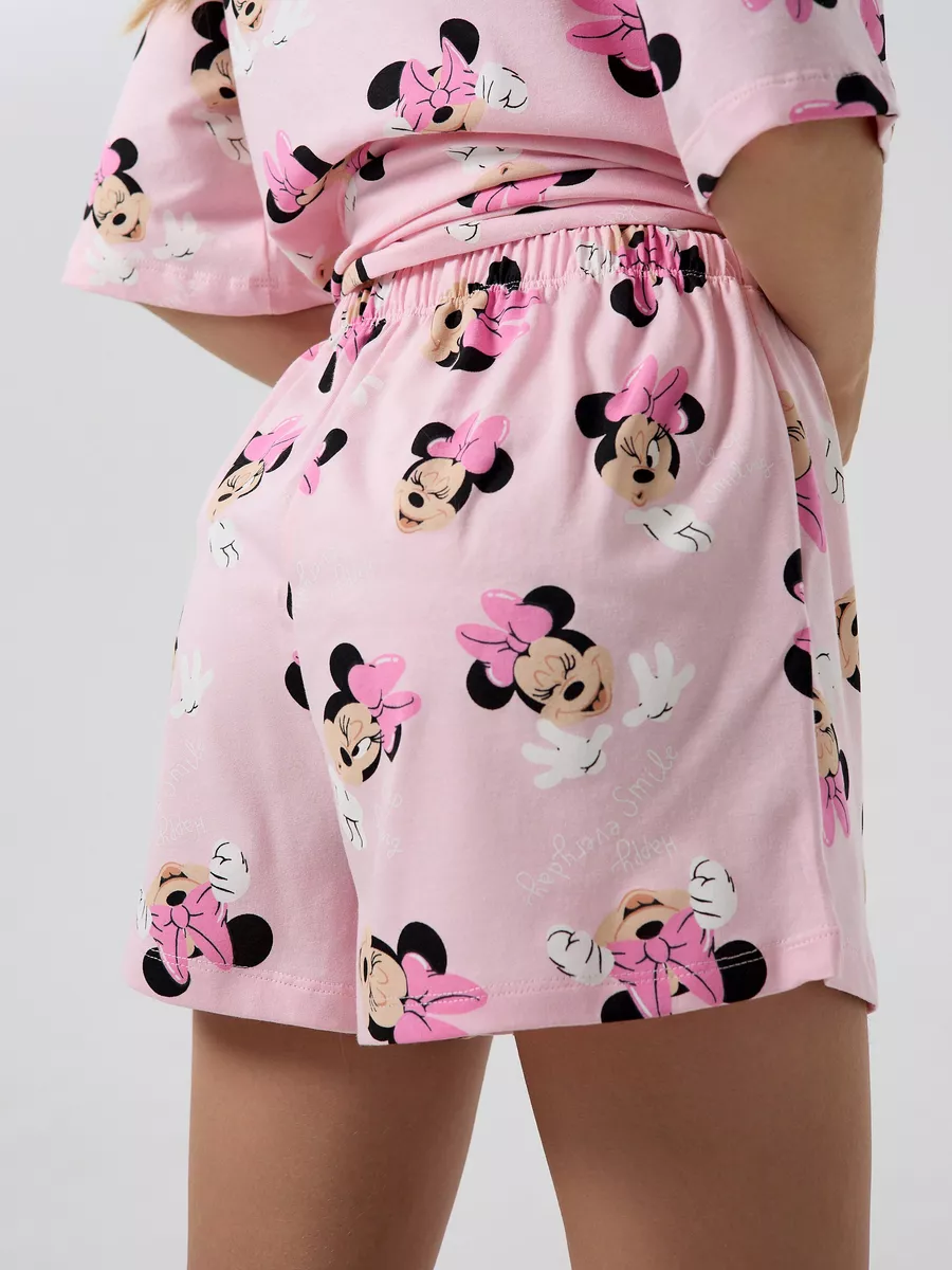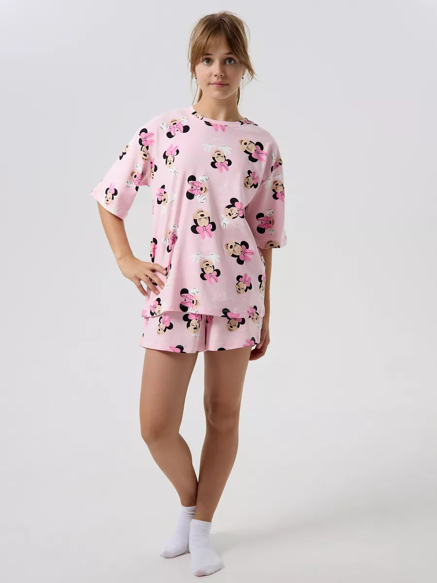 Пижама предназначена не только для сна, но и для активных игр дома. Комфортный крой одежды позволит ребенку свободно двигаться без чувства скованности. Практичный дизайн понравится как детям, так и родителям: пижама согреет зимой, а текстура ткани обеспечит нежное и легкое прикосновение к коже летом. Изделие выполнено из высококачественного хлопка, который не вызывает раздражения на коже, не протирается и не теряет свою яркость. Домашний комплект отличается не только функциональностью, но и стильным внешним видом: яркий цвет и модный принт с минни маус подойдут каждой девочке! Оптимальная длина шорт предотвращает их короткость, а аккуратный пошив с ровными строчками и отсутствием торчащих ниток гарантирует качество изделия. Пижама для девочки с шортами идеально подходит для повседневной носки дома. Пижама для девочки представлена в различных размерах от 134 до 170. Благодаря расширенной размерной сетке, данная модель подходит как маленьким девочкам, так и молодым девушкам-подросткам.