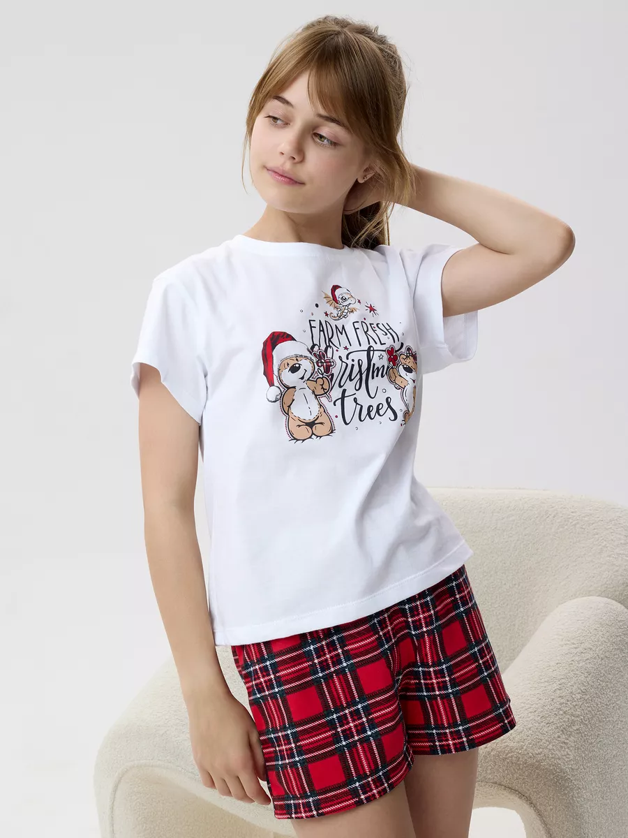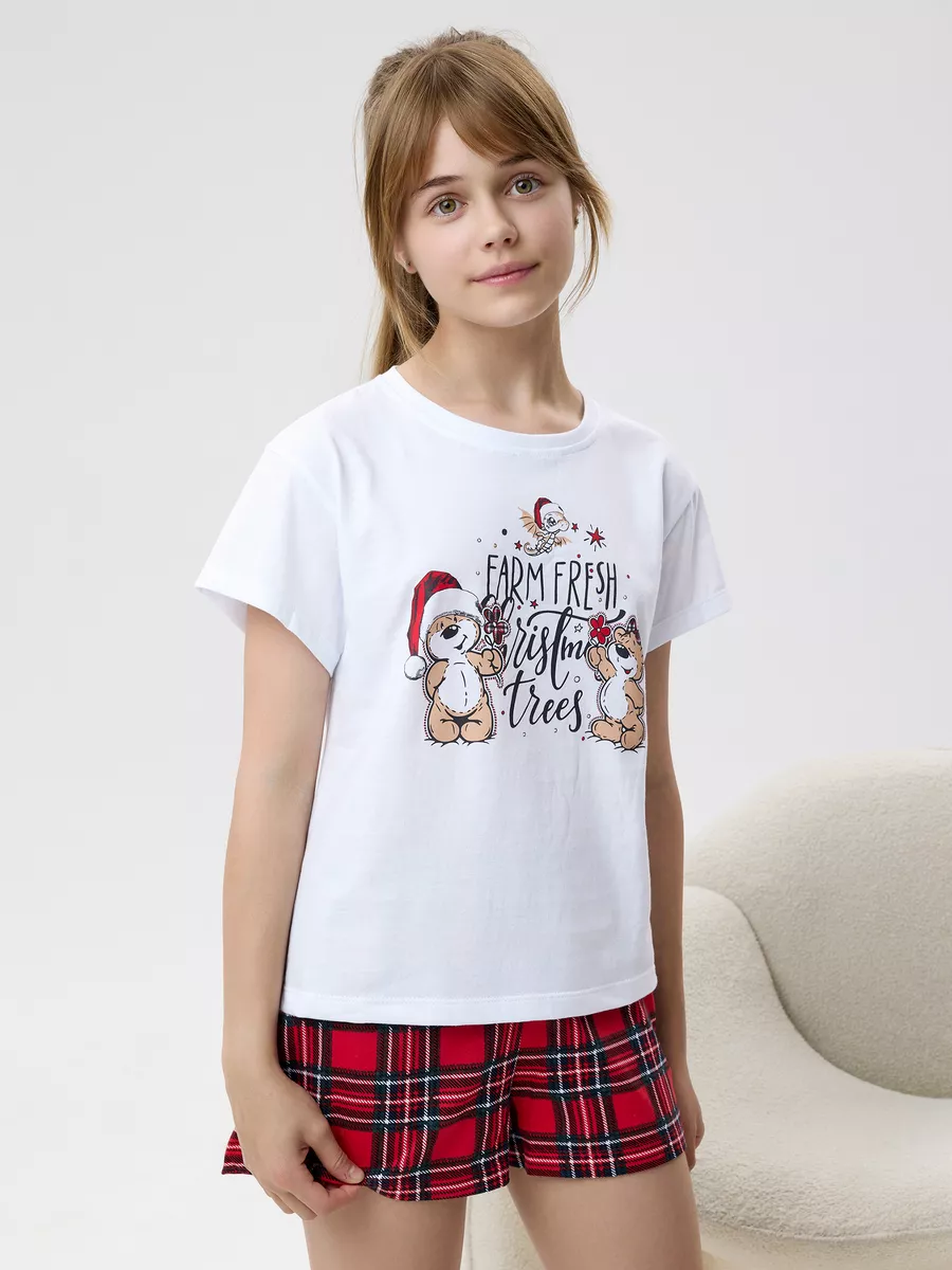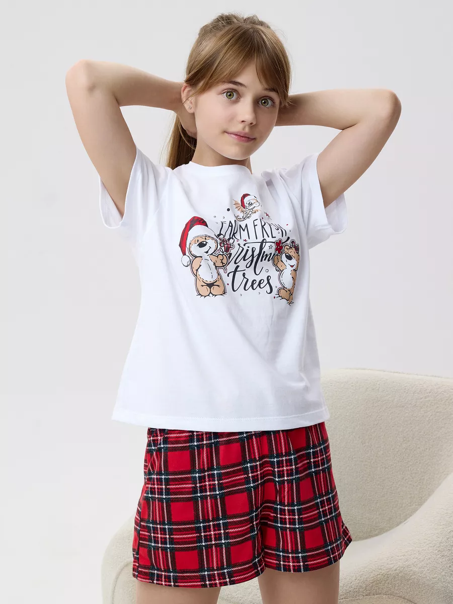Пижама предназначена не только для сна, но и для активных игр дома. Комфортный крой одежды позволит ребенку свободно двигаться без чувства скованности. Практичный дизайн понравится как детям, так и родителям: пижама согреет зимой, а текстура ткани обеспечит нежное и легкое прикосновение к коже летом. Изделие выполнено из высококачественного хлопка, который не вызывает раздражения на коже, не протирается и не теряет свою яркость. Домашний комплект отличается не только функциональностью, но и стильным внешним видом: яркий цвет и модный новогодний принт с мишками подойдут каждой девочке! Оптимальная длина шорт предотвращает их короткость, а аккуратный пошив с ровными строчками и отсутствием торчащих ниток гарантирует качество изделия. Пижама для девочки с шортами идеально подходит для повседневной носки дома. Пижама для девочки представлена в различных размерах от 134 до 164. Благодаря расширенной размерной сетке, данная модель подходит как маленьким девочкам, так и молодым девушкам-подросткам.