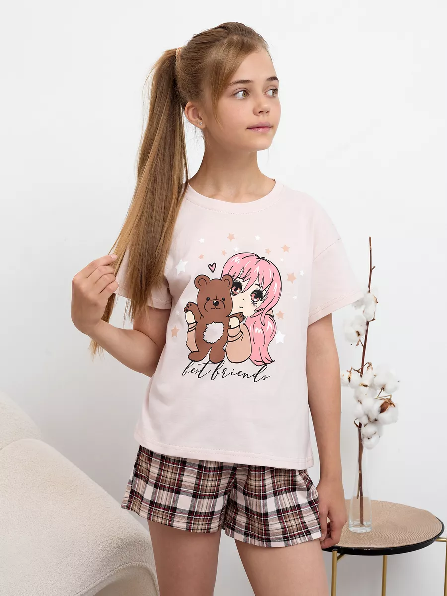 Пижама предназначена не только для сна, но и для активных игр дома. Комфортный крой одежды позволит ребенку свободно двигаться без чувства скованности. Практичный дизайн понравится как детям, так и родителям: пижама согреет зимой, а текстура ткани обеспечит нежное и легкое прикосновение к коже летом. Изделие выполнено из высококачественного хлопка, который не вызывает раздражения на коже, не протирается и не теряет свою яркость. Домашний комплект отличается не только функциональностью, но и стильным внешним видом: яркий цвет и модный принт с аниме-девочкой подойдут каждой девочке! Оптимальная длина шорт предотвращает их короткость, а аккуратный пошив с ровными строчками и отсутствием торчащих ниток гарантирует качество изделия. Пижама для девочки с шортами идеально подходит для повседневной носки дома. Пижама для девочки представлена в различных размерах от 134 до 164. Благодаря расширенной размерной сетке, данная модель подходит как маленьким девочкам, так и молодым девушкам-подросткам.