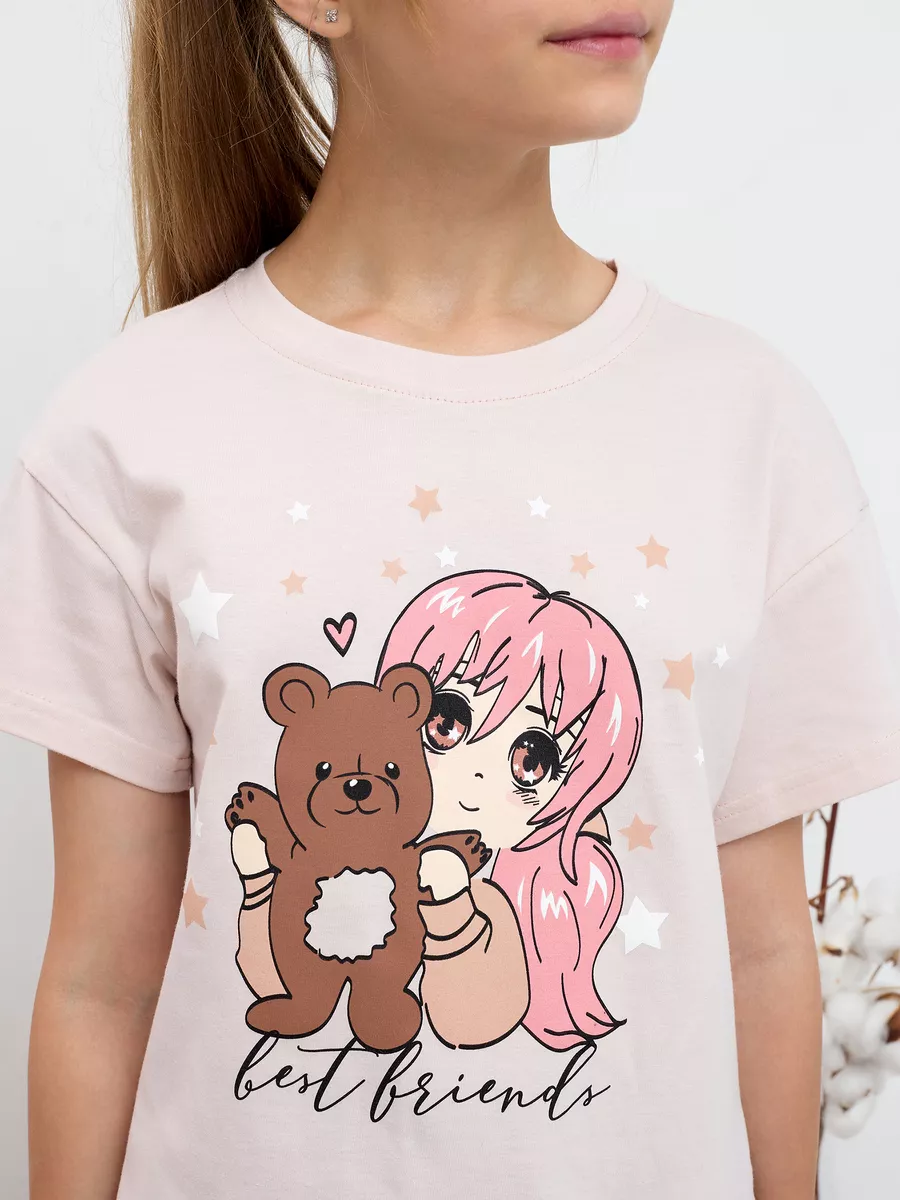 Представляем вам пижаму оверсайз для девочки, изготовленную из легкого и дышащего материала. Наши пижамы изготовлены из хлопка премиального качества, приятный к телу и дышащий материал обеспечит вашему ребенку свободу движений и комфорт. Комплект пижамы состоит из оверсайз футболки и свободных шорт. Удобные шорты имеют пояс на резинке, которые не вытягиваются после продолжительного использования, и не сдавливают живот. Универсальный вариант для сна, ночевок с подругами и идеальный подарок к празднику Новый год или 8-е марта.