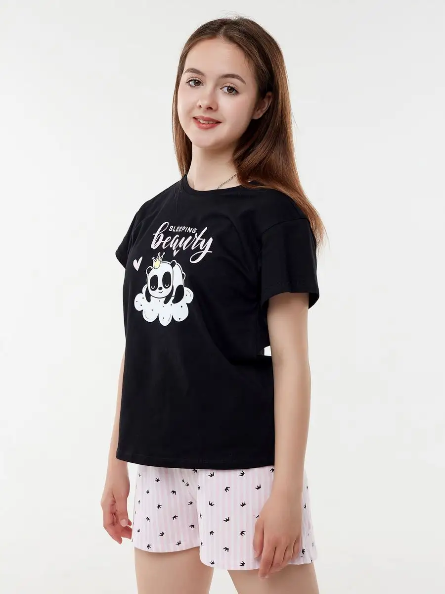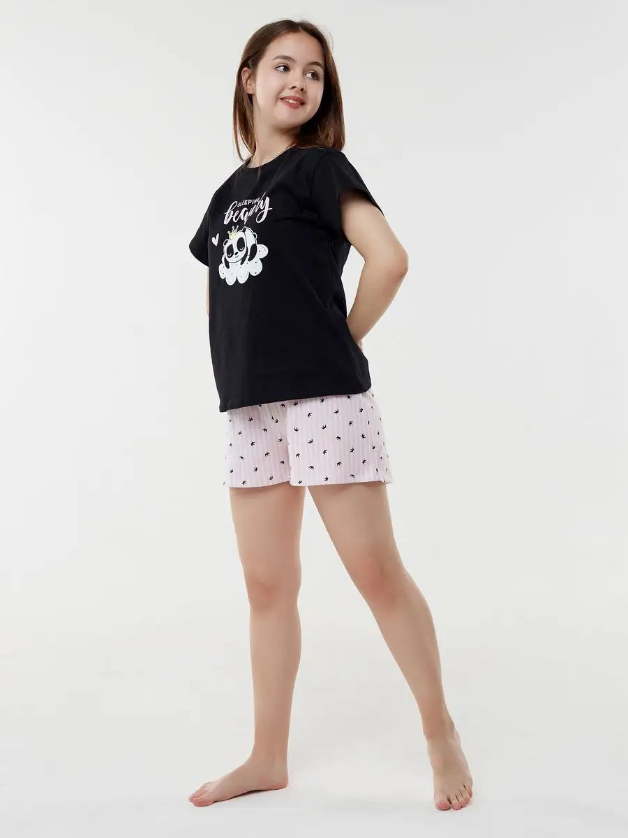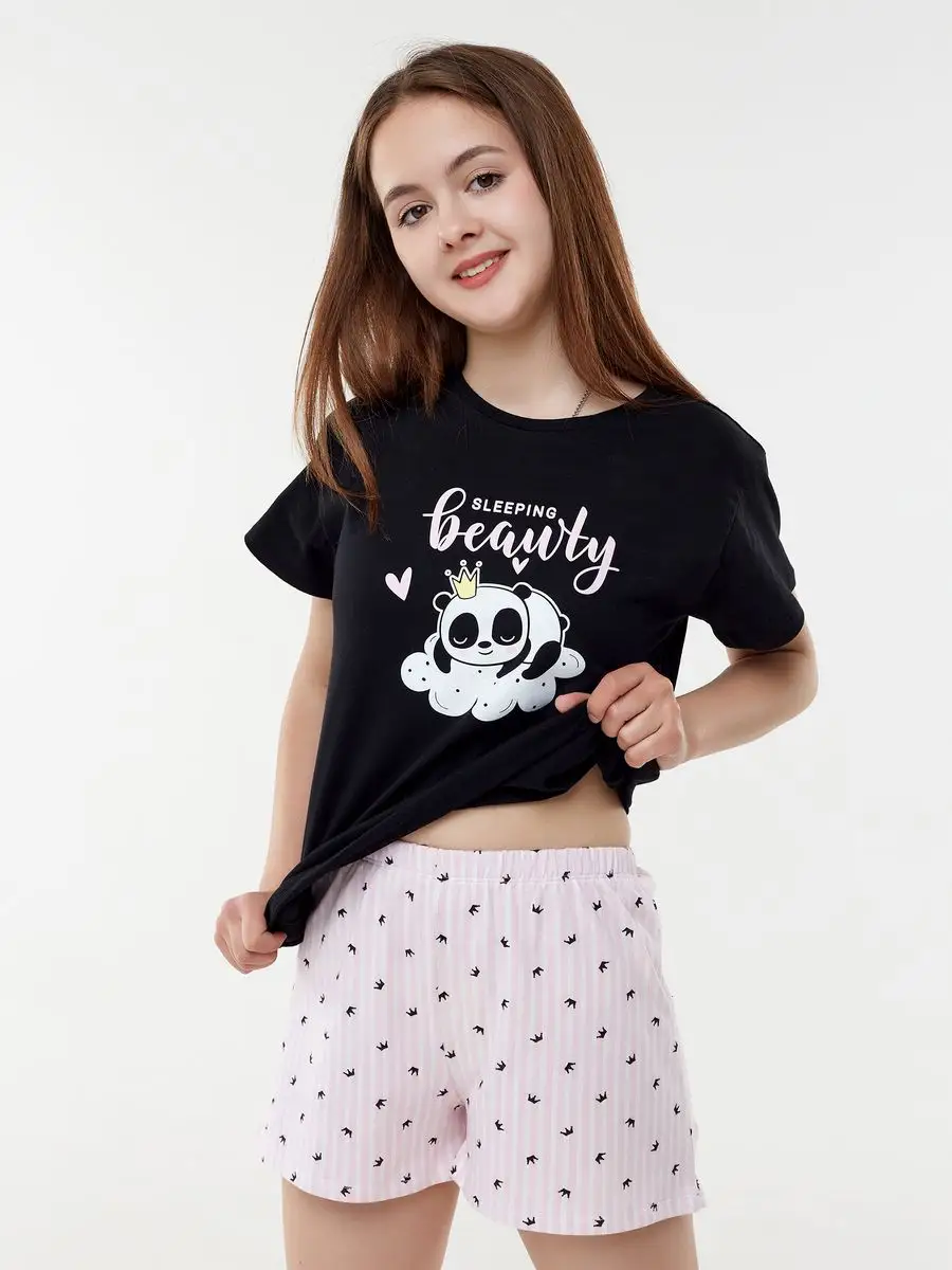 Пижама предназначена не только для сна, но и для активных игр дома. Комфортный крой одежды позволит ребенку свободно двигаться без чувства скованности. Практичный дизайн понравится как детям, так и родителям: пижама согреет зимой, а текстура ткани обеспечит нежное и легкое прикосновение к коже летом. Изделие выполнено из высококачественного хлопка, который не вызывает раздражения на коже, не протирается и не теряет свою яркость. Домашний комплект отличается не только функциональностью, но и стильным внешним видом: яркий цвет и модный принт с пандой подойдут каждой девочке! Оптимальная длина шорт предотвращает их короткость, а аккуратный пошив с ровными строчками и отсутствием торчащих ниток гарантирует качество изделия. Пижама для девочки с шортами идеально подходит для повседневной носки дома. Пижама для девочки представлена в различных размерах от 128 до 164. Благодаря расширенной размерной сетке, данная модель подходит как маленьким девочкам, так и молодым девушкам-подросткам.