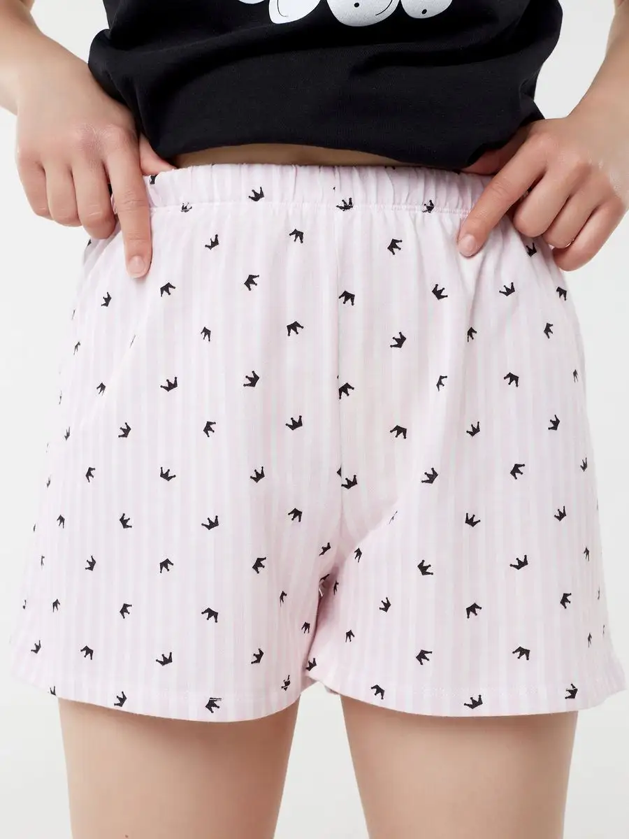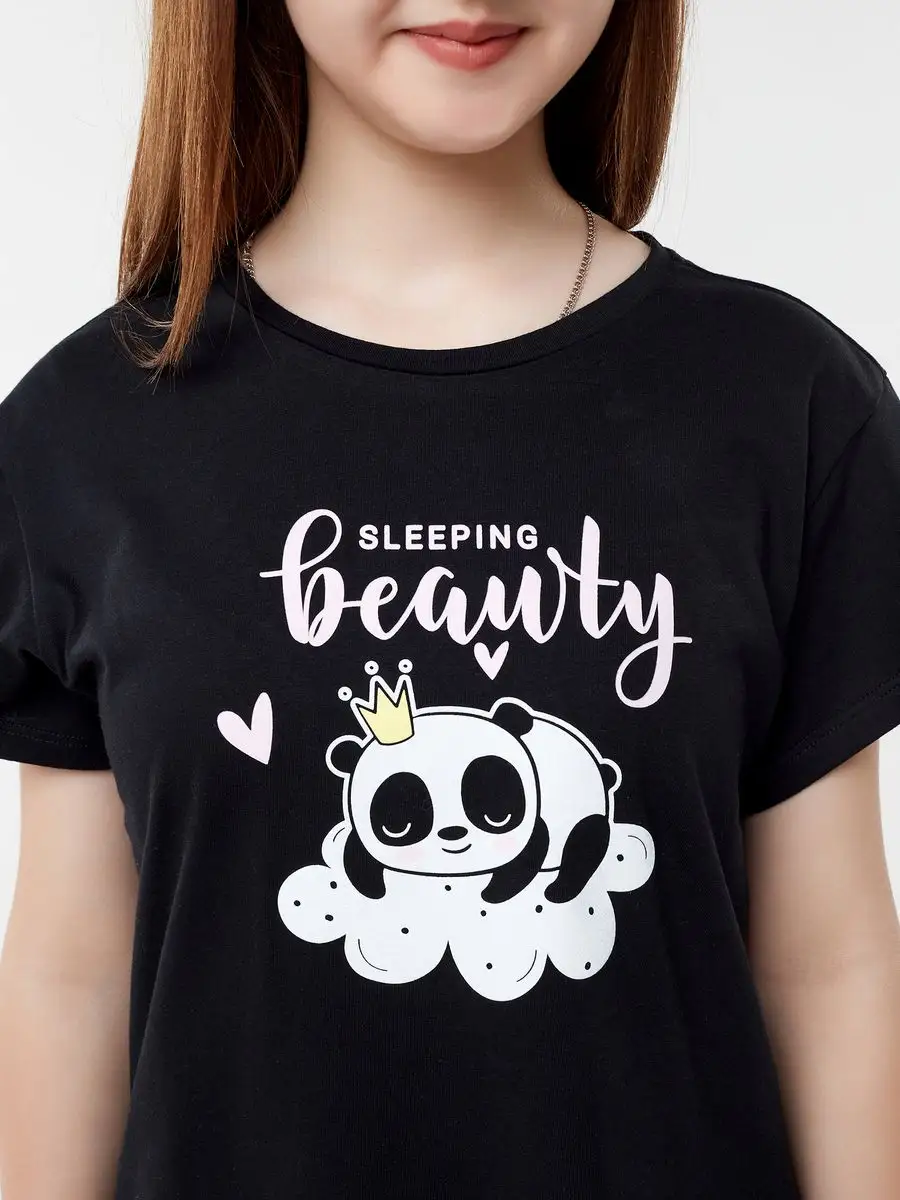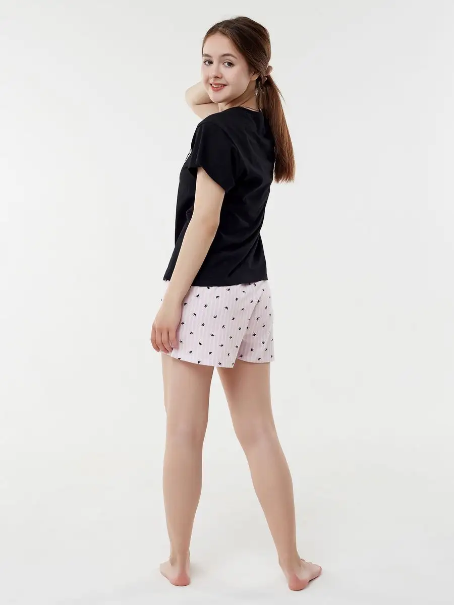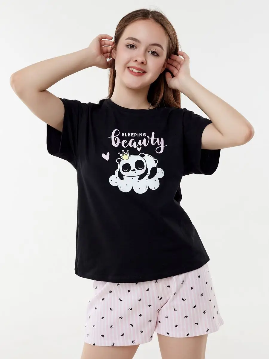 Пижама предназначена не только для сна, но и для активных игр дома. Комфортный крой одежды позволит ребенку свободно двигаться без чувства скованности. Практичный дизайн понравится как детям, так и родителям: пижама согреет зимой, а текстура ткани обеспечит нежное и легкое прикосновение к коже летом. Изделие выполнено из высококачественного хлопка, который не вызывает раздражения на коже, не протирается и не теряет свою яркость. Домашний комплект отличается не только функциональностью, но и стильным внешним видом: яркий цвет и модный принт с пандой подойдут каждой девочке! Оптимальная длина шорт предотвращает их короткость, а аккуратный пошив с ровными строчками и отсутствием торчащих ниток гарантирует качество изделия. Пижама для девочки с шортами идеально подходит для повседневной носки дома. Пижама для девочки представлена в различных размерах от 128 до 164. Благодаря расширенной размерной сетке, данная модель подходит как маленьким девочкам, так и молодым девушкам-подросткам.