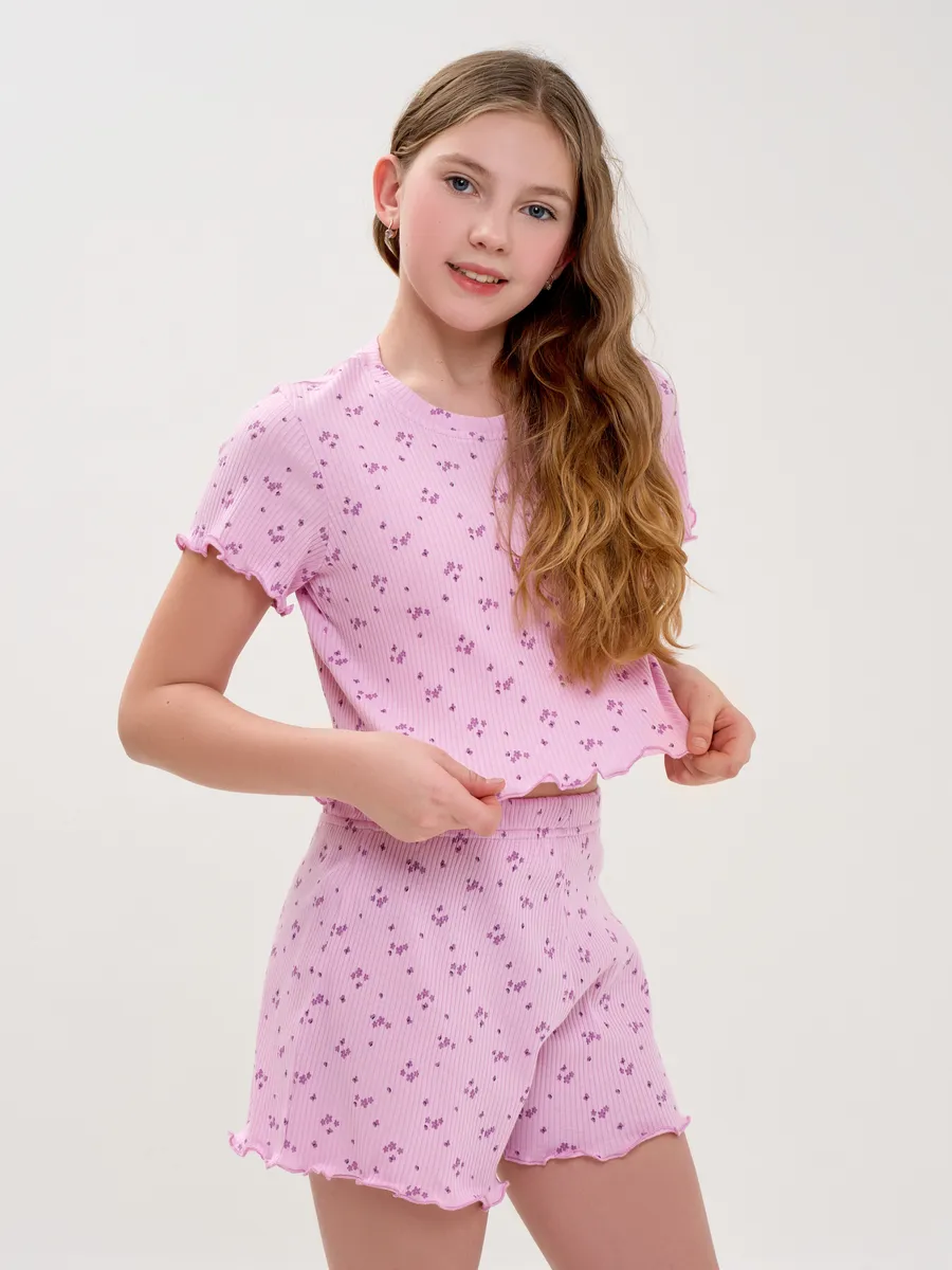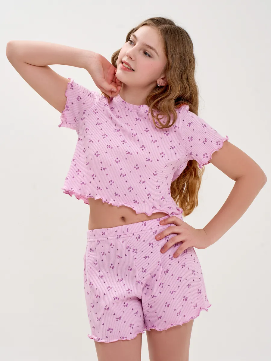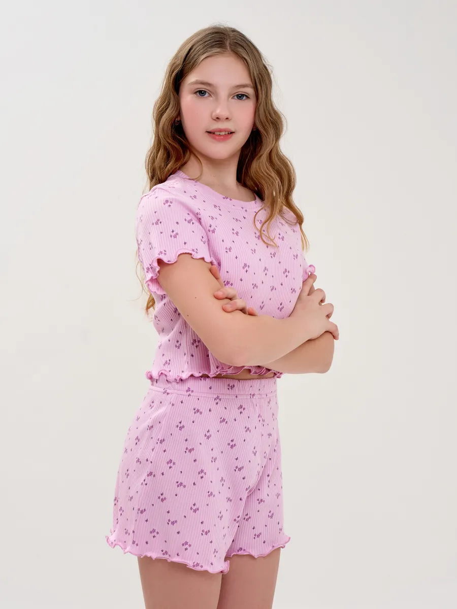 Пижама предназначена не только для сна, но и для активных игр дома. Комфортный крой одежды позволит ребенку свободно двигаться без чувства скованности. Практичный дизайн понравится как детям, так и родителям: пижама согреет зимой, а текстура ткани обеспечит нежное и легкое прикосновение к коже летом. Изделие выполнено из высококачественного хлопка, который не вызывает раздражения на коже, не протирается и не теряет свою яркость. Домашний комплект отличается не только функциональностью, но и стильным внешним видом: нежный, приятный сиреневый цвет и модный принт с цветочками подойдут каждой девочке! Оптимальная длина шорт предотвращает их короткость, а аккуратный пошив с ровными строчками и отсутствием торчащих ниток гарантирует качество изделия. Пижама для девочки из лапши с шортами идеально подходит для повседневной носки дома. Пижама для девочки представлена в различных размерах от 134 до 164. Благодаря расширенной размерной сетке, данная модель подходит как маленьким девочкам, так и молодым девушкам-подросткам.