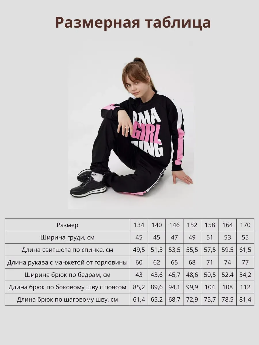 Представляем стильный спортивный костюм для девочки от нашего бренда, который сочетает в себе комфорт, стиль и качество. Этот детский костюмчик выполнен из комфортного трикотажного материала, который отличается высокой прочностью, не деформируется и не скатывается даже при повседневной носке и многочисленных стирках. Трикотажные брюки-джоггеры гармонично дополняет детский свитшот, создавая универсальный повседневный образ для прогулки и занятий спортом. Этот подростковый спорт.костюм двойка — многофункциональное решение для девочки: он подойдёт для физкультуры в школу, для прогулок и поездок. Благодаря универсальному дизайну, эта детская спортивка на девочку легко комбинируется с другими элементами гардероба. Благодаря удобству и практичности он станет незаменимым элементом повседневного гардероба. Костюм для подростка обретает особый шарм благодаря декоративным элементам: полоскам и принту с буквами. Такие детали делают его идеальным выбором для девочек, которые любят быть в центре внимания и следят за трендами. Данное изделие — превосходный вариант подарка для дочки или внучки. Оно порадует на день рождения, 8 Марта и в любой другой праздничный день.