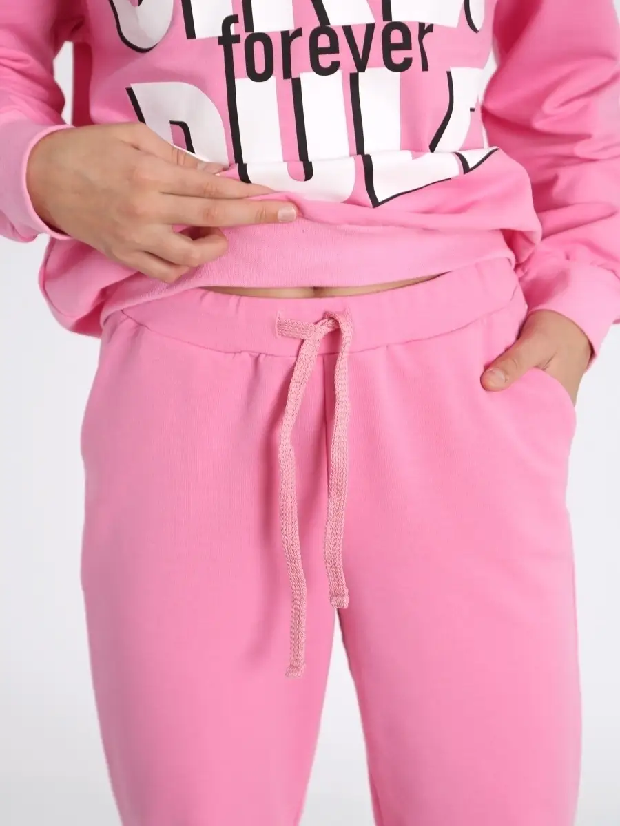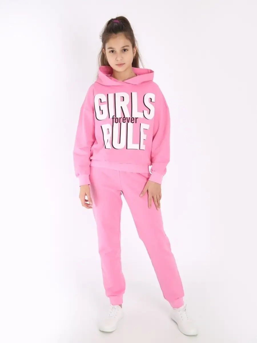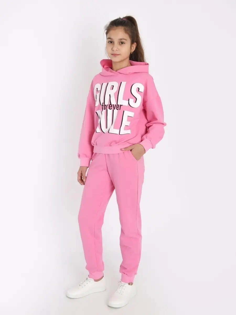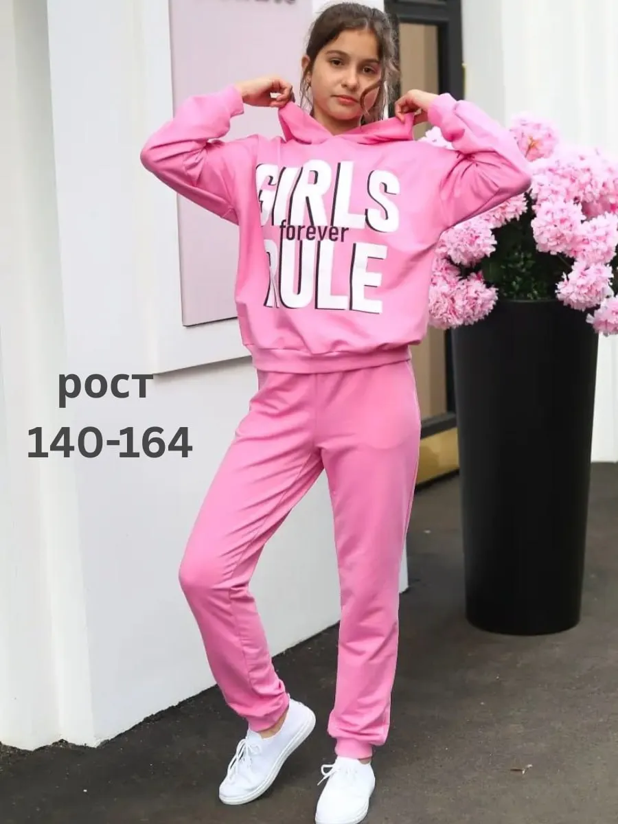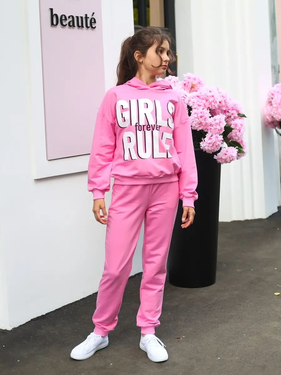 Представляем стильный спортивный костюм для девочки от нашего бренда, который сочетает в себе комфорт, стиль и качество. Этот детский костюмчик выполнен из комфортного трикотажного материала, который отличается высокой прочностью, не деформируется и не скатывается даже при повседневной носке и многочисленных стирках. Трикотажные брюки-джоггеры гармонично дополняет детский свитшот, создавая универсальный повседневный образ для прогулки и занятий спортом. Этот подростковый спорт.костюм двойка — многофункциональное решение для девочки: он подойдёт для физкультуры в школу, для прогулок и поездок. Благодаря универсальному дизайну, эта детская спортивка на девочку легко комбинируется с другими элементами гардероба. Благодаря удобству и практичности он станет незаменимым элементом повседневного гардероба. Костюм для подростка обретает особый шарм благодаря принту с буквами. Такие детали делают его идеальным выбором для девочек, которые любят быть в центре внимания и следят за трендами. Данное изделие — превосходный вариант подарка для дочки или внучки. Оно порадует на день рождения, 8 Марта и в любой другой праздничный день.